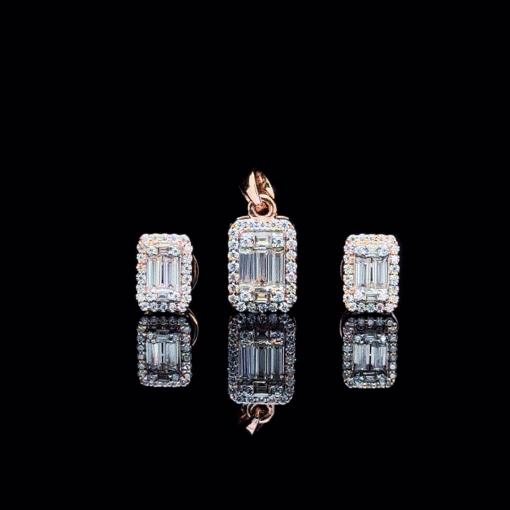 Beautiful Rose Gold Platting Pendant Set Made In 925 Sterling Silver Embellished With Shinny Moissanite Diamond For Anniversary Gift